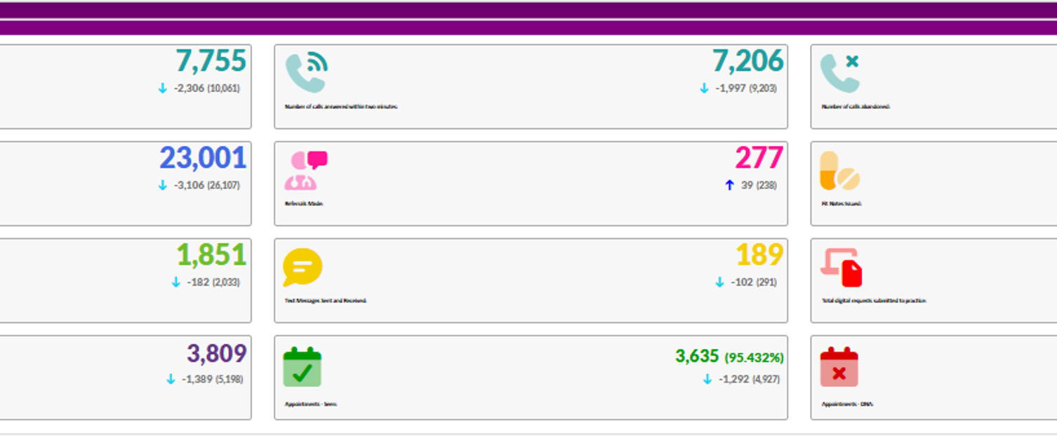 The Practice aims to summarise activity data on a monthly basis. we collate information from our computer system with regard to access and activity which enables up to keep patients up to date with the activity within the practice for the full month.